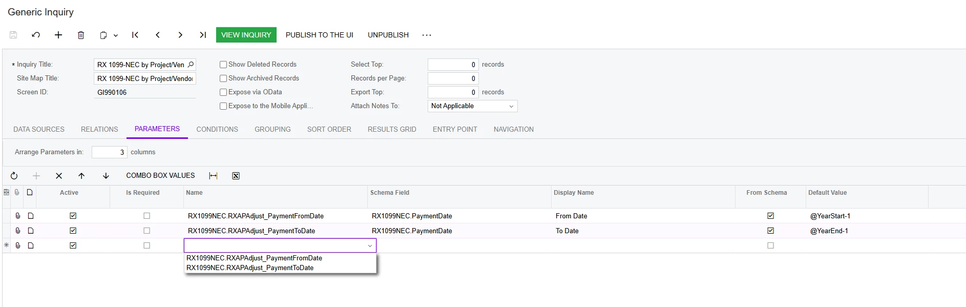Created YTD Generic Inquiry - all good. Month Parameter