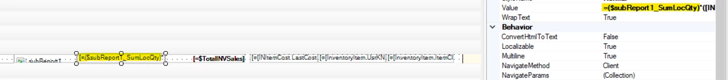 I struggle to apply the variable declared in the detailed section of subreport to use it in main report to display Item Class description Sum ($ Subreport_amount)