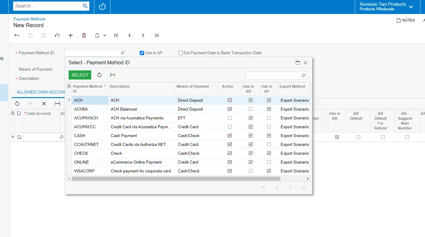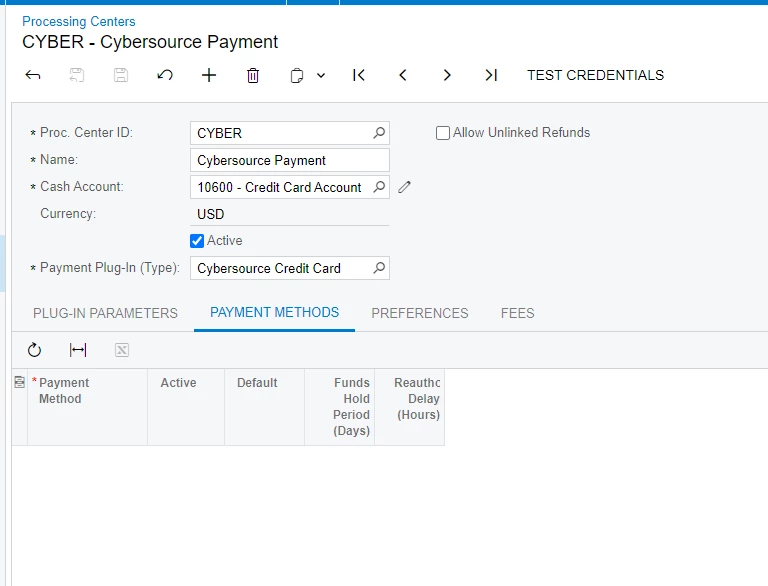 not sure what is missing? the acumatica docs are not helpful so I’m not sure why it doesn’t show any payment methods availabe, is there anything I miss to add to the payment plugin, thanks in advance