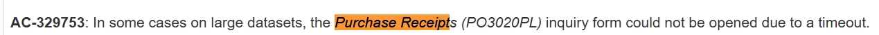 Hello, We currently upgrade to 2024 R2. However, when I open the PO3020PL, it says timeout.