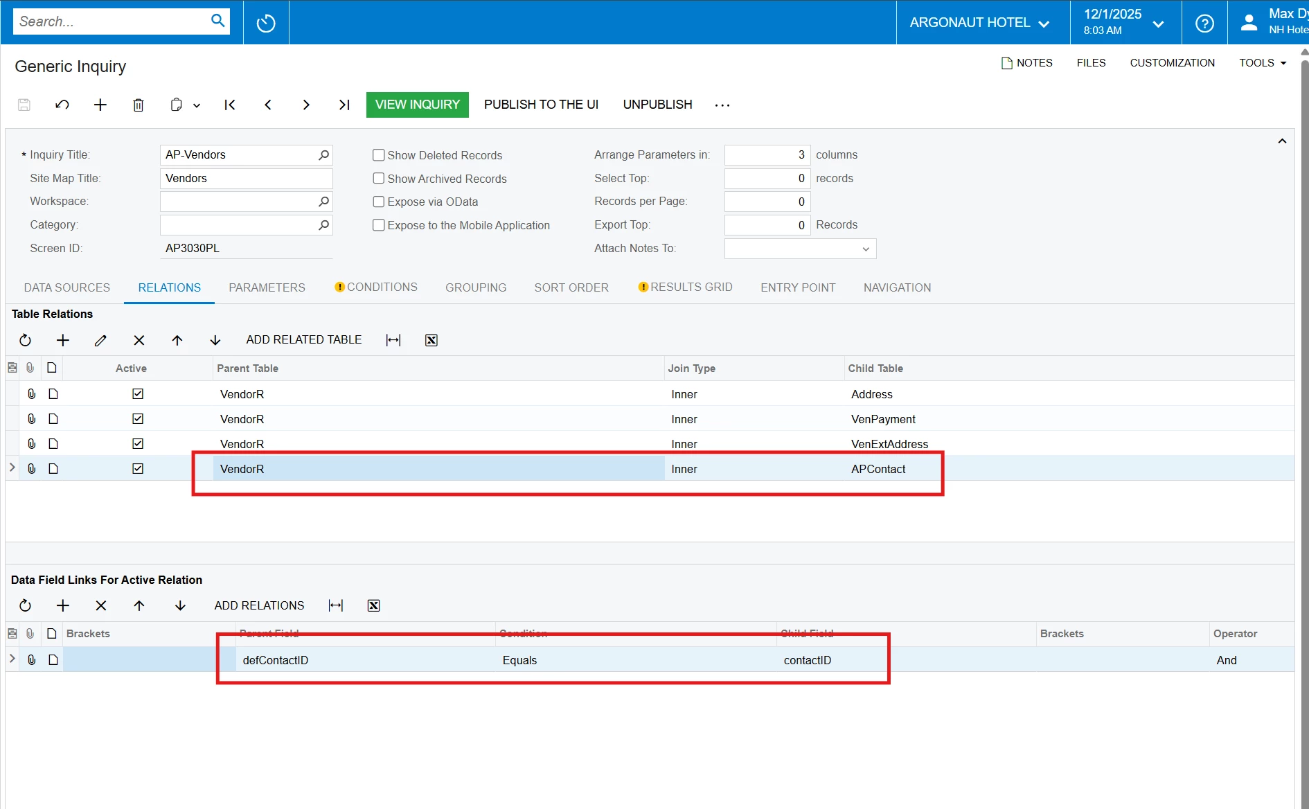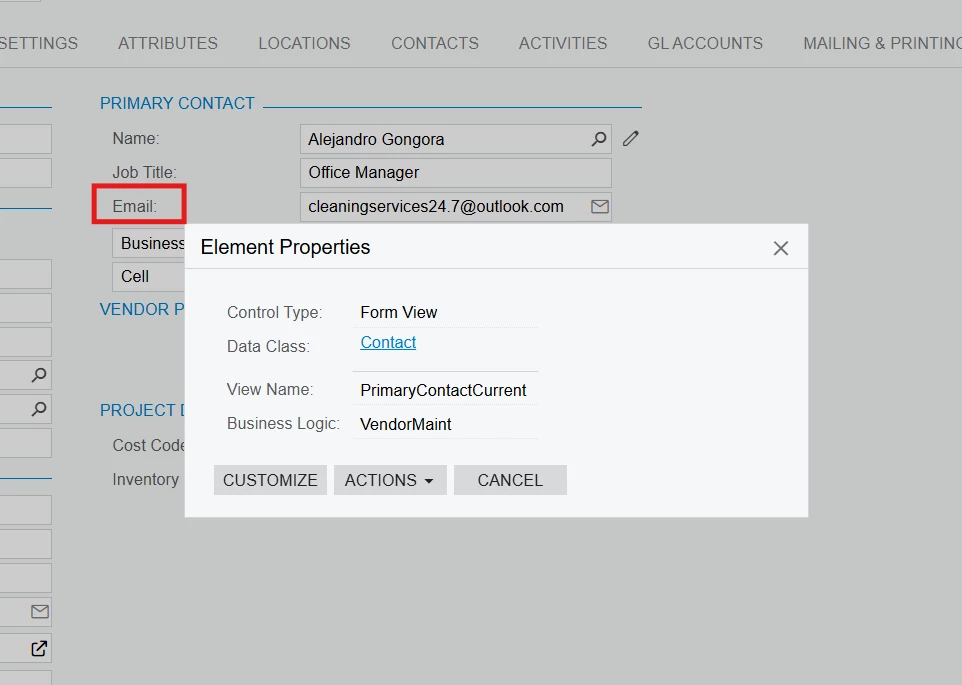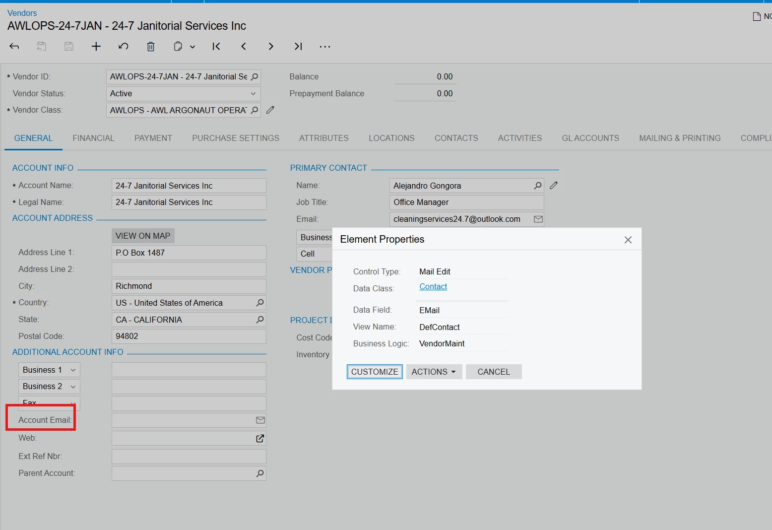 I am attempting to pull in both the Vendor Email Address listed under Additional Information, as well as the Primary Contact Email Address into a Generic Inquiry,