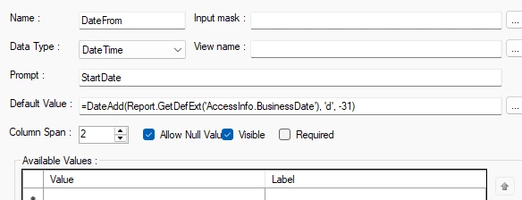 trying to copy an existing report by rebuilding it so i understand. My parameters do not seem to be working. I can fill the data fields out with variables, but it seems to just default to how the GI is configured.