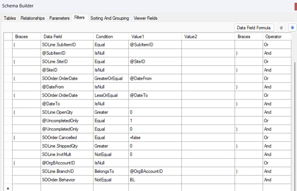 For CustomerID i’ve tried to use ARInvoice.CustomerID which is what i have declared; but doesn't work. the string in the screen grab works on the reference form even though INTran was not declared anywhere.
