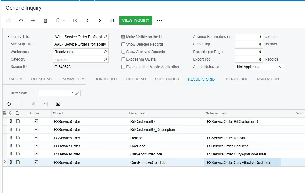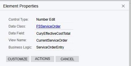 On the service order side when I do inspect element on the totals tab on the service order and hover over the cost total it says the data field is CuryEffectiveCostTotal. By when I add that to my report it’s coming up as blank for every line item. I am definitely missing something. It jusr doesn’t want to pull that one field in.