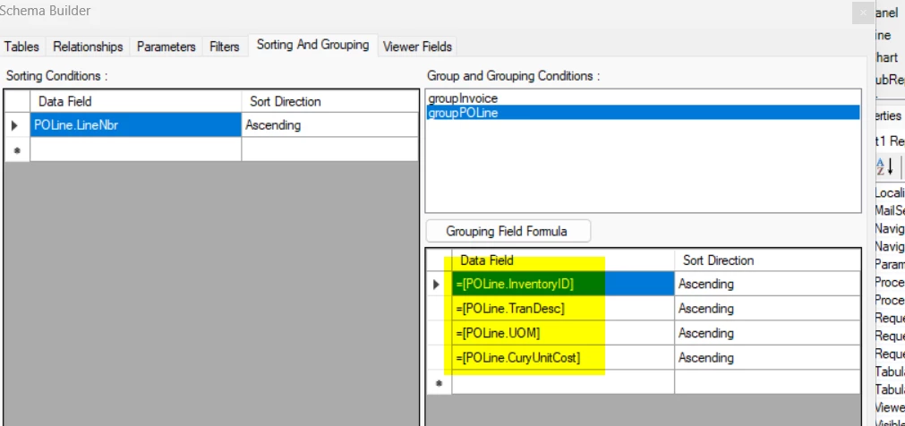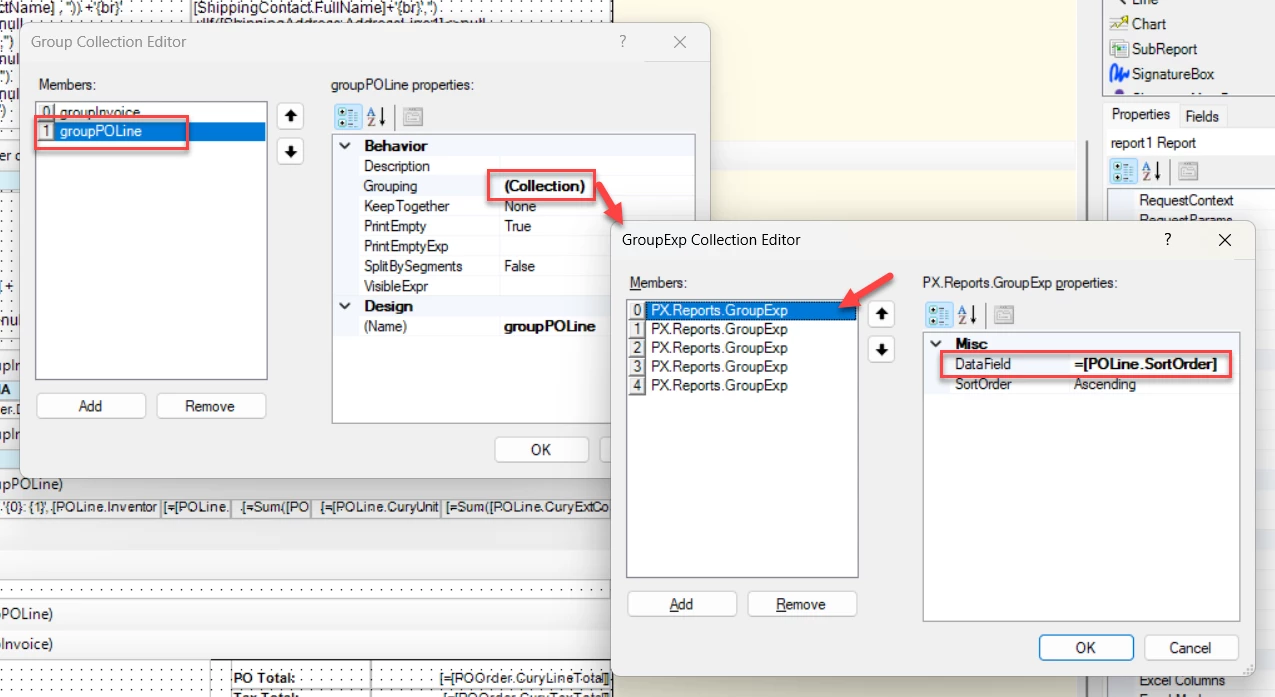 I attempted to use POLine.SortOrder with ascending sorting in the report; however, the sorting does not appear to be working as expected.
