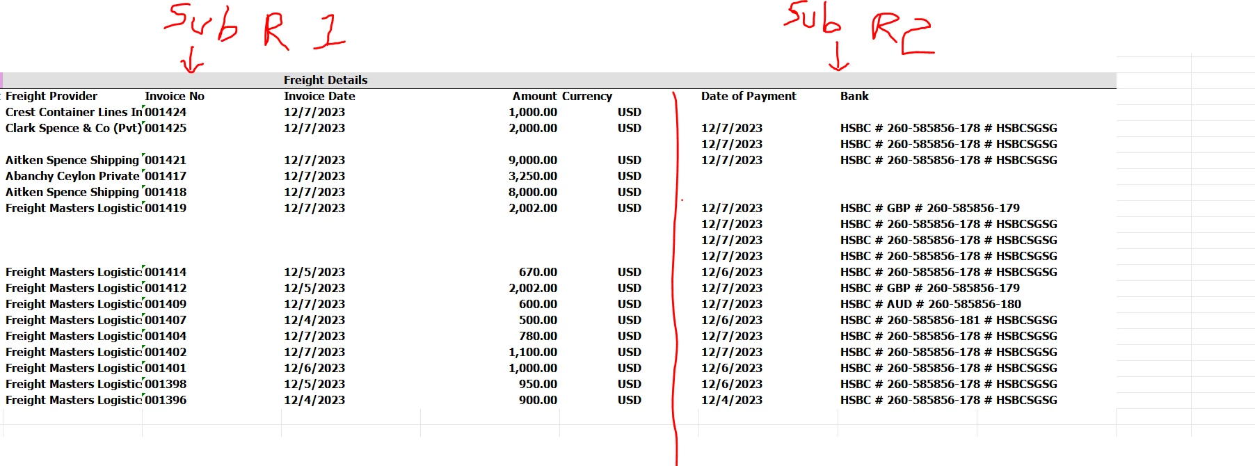 Here are the joins used. Date of payment and bank belongs to subreport 4 and the other details belongs to subreport 2