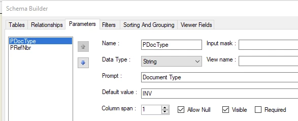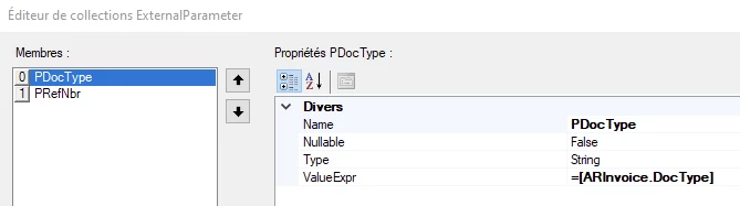 The value of the current ARInvoice's DocType that is received in the subreport is not the original value, but its translation !! So instead of having 'INV', I get 'Facture' witch is our french translation of INV.