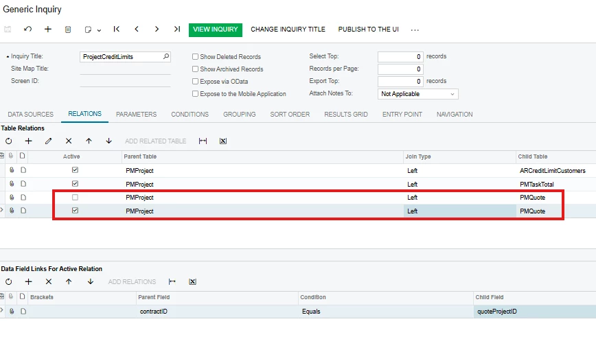 I am trying to create a GI that links the project quote to the project (to compare values). I’m getting this error when I run it. I have tried two different ways of linking the two tables: