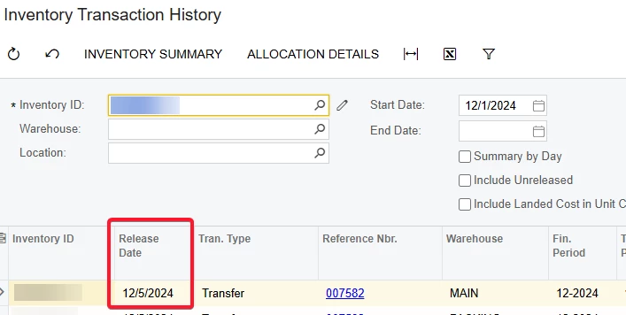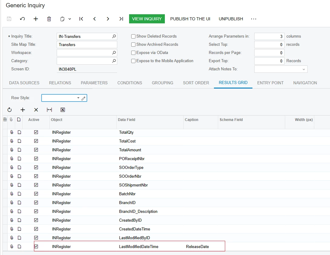 I’m looking to create a GI that will list inventory transfers with their Release Dates. I don’t see a field in the INRegister table that stores the release date. What would be the way to get this date on a GI?