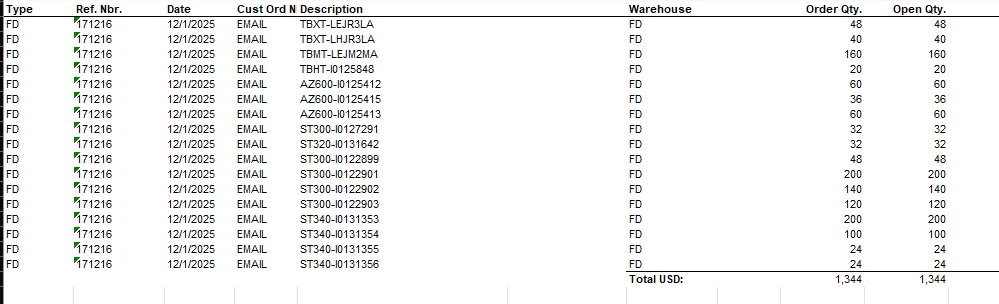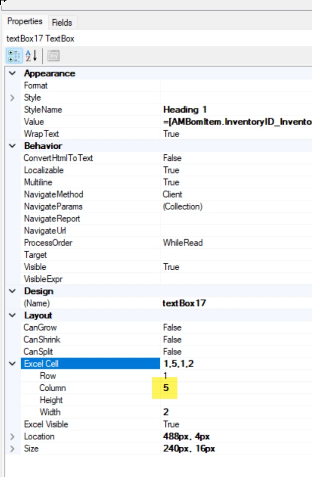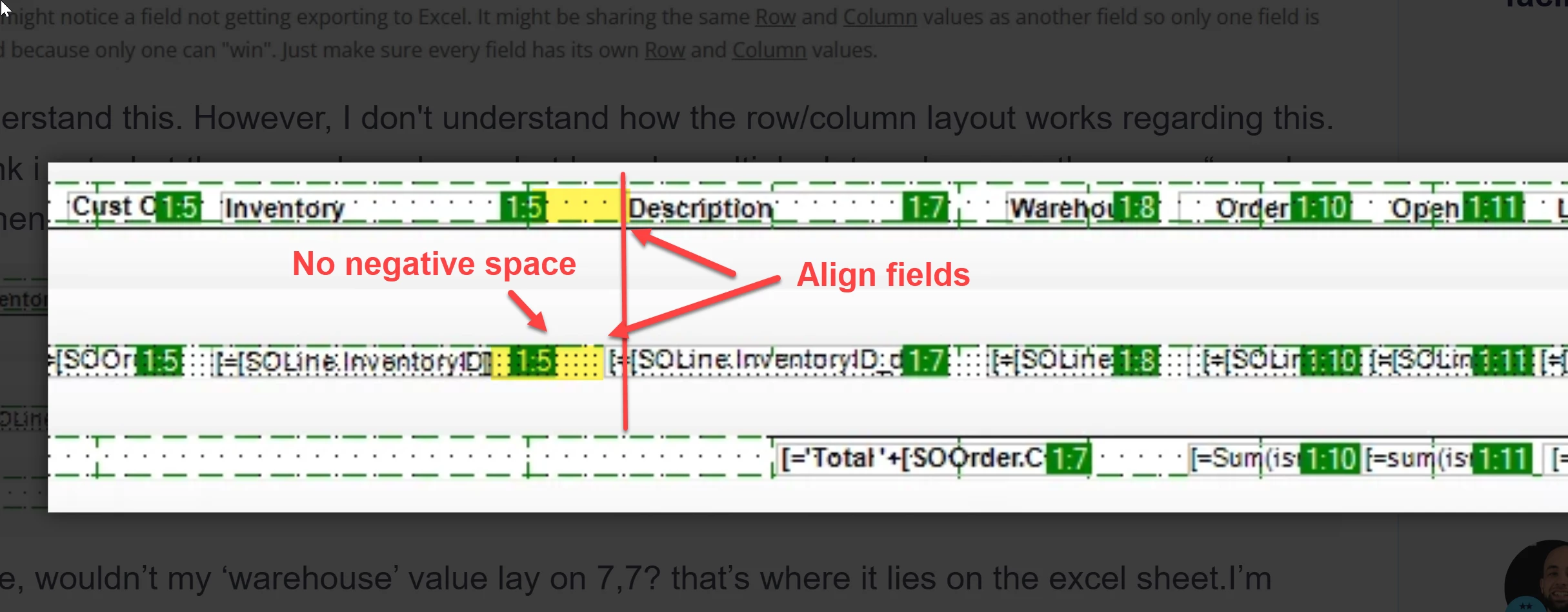 For example, wouldn’t my ‘warehouse’ value lay on 7,7? that’s where it lies on the excel sheet.I’m trying to get “SOLine.InventoryID_description” to show on excel.