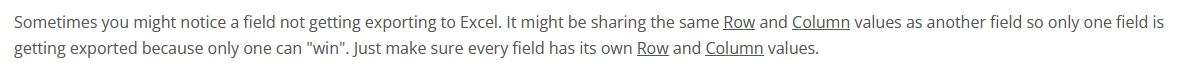 I totally understand this. However, I don't understand how the row/column layout works regarding this. From the link i get what the green box shows. but how do multiple data values use the same “excel cell”, but when pushed to excel they’re not actually those values.