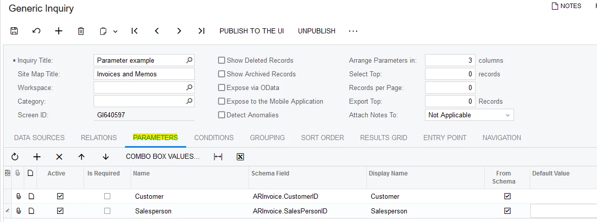 Is there a way to use a condition in a Generic Inquiry to bring up the records associated with one specific customer name or their account ID? The data will be used in an Excel worksheet and emailed out to the sales rep and the customer in question. I have tried using Customer.ParentID = 123456 BAccountR.ParentBAccountID_description = Disney World Travel in the conditions tab but the GI still brings over everything including customers and accounts numbes not needed.