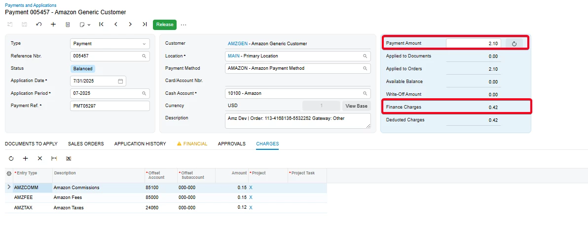 A few notes about us so you have a better understanding, we get hundreds of orders everyday, we do not have Amazon payments connected to Acumatica so we manually process payments for every order in bulk. I also believe the person who was before me did things incorrectly and she trained me and so I feel like I am making our books not have accurate information because of that.