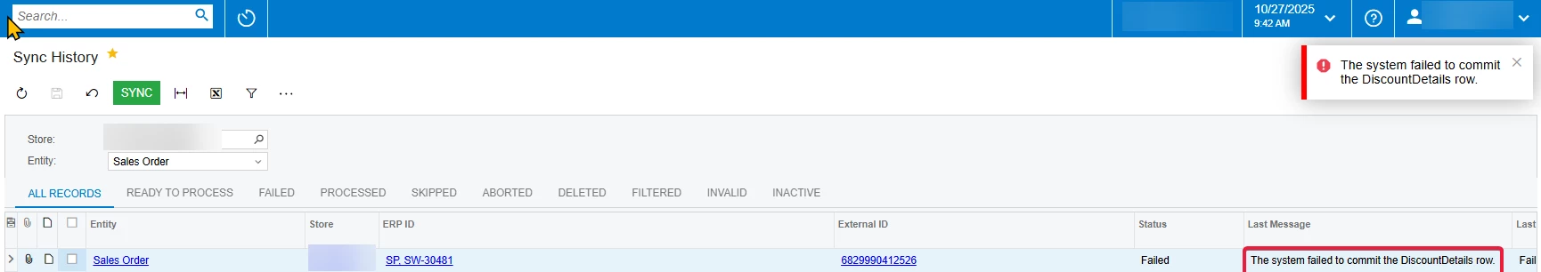 When the order in shopify store has discount it sync successfully but after a minute or two it will add additional discount line that causes this error. We dont have any custom mapping we just using the native connector.