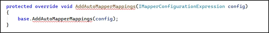 protected virtual void AddAutoMapperMappings(IMapperConfigurationExpression config) { }