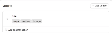Shopify Variant Values for SIZE Attribute