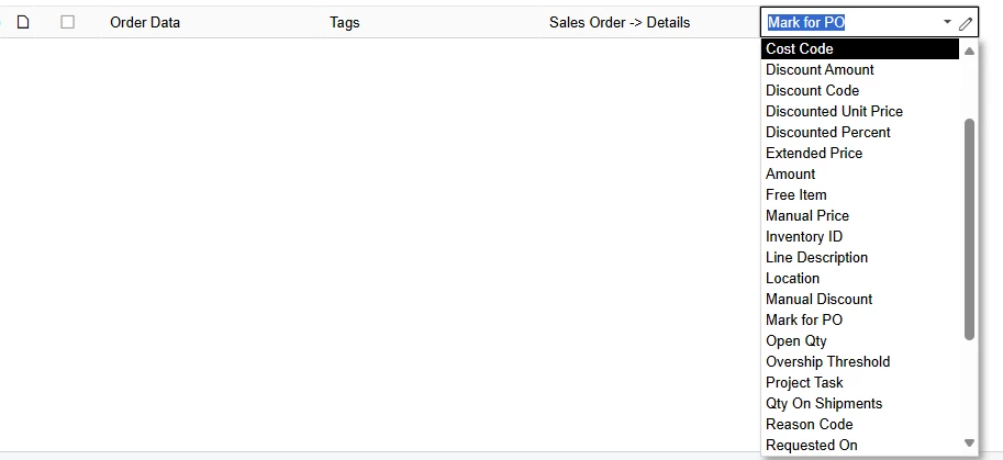 I want to add a tag to Shopify orders with the dropship PO Number from the line details in Acumatica. I see the “mark for PO” field, but not the PO Number field.