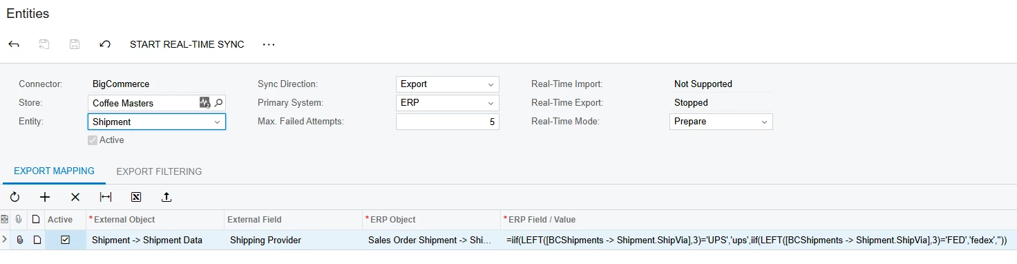 Does anyone know the setup in the Commerce module to allow for the tracking number to be sent back to BC from Acumatica? I am unsure if this setup is the correct setup, but I know we not currently having tracking IDs sent back to BC.