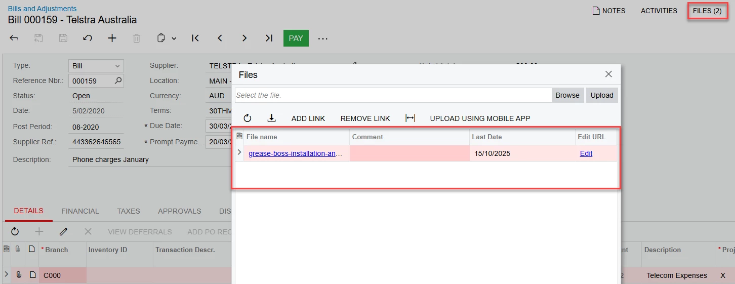 I have a strange problem that bugged me for ages. For certain records there is a mismatch with the number of attached files vs the count of files. In the example below, you can see it has one file, but states two for the count.